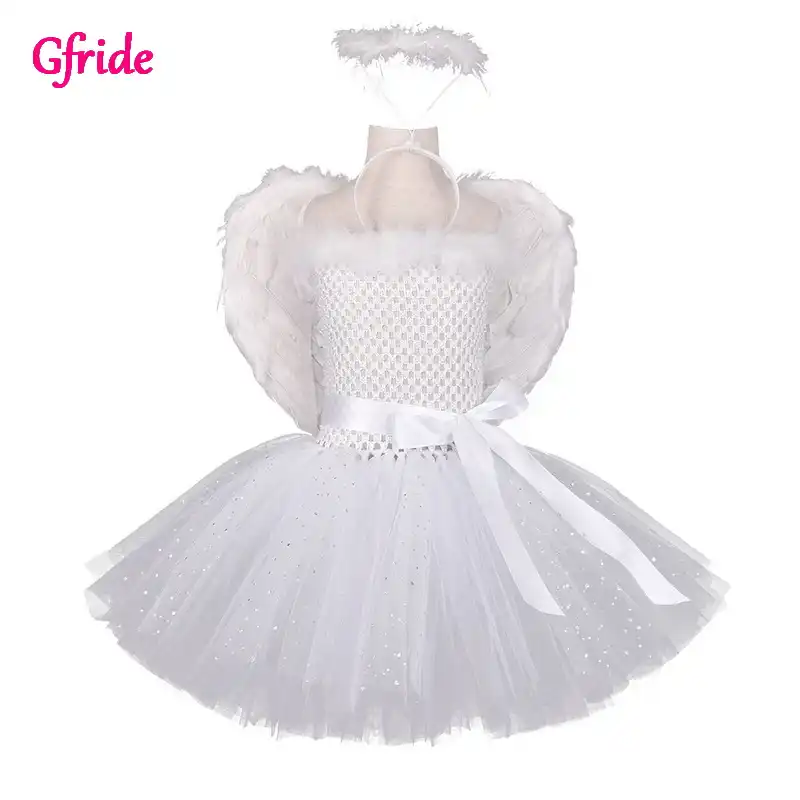 Fairy Costume Tutu Dress For Girls White Princess Flower Girl Dress Tulle Dress With Headband And Wings Birthday Party Outfits Girls Costumes Aliexpress